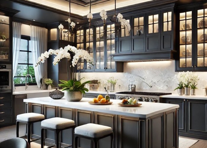 A great option for showcasing dishware, glass-front cabinets make kitchens feel open and airy. They also pair well with accent lighting for a stylish display.